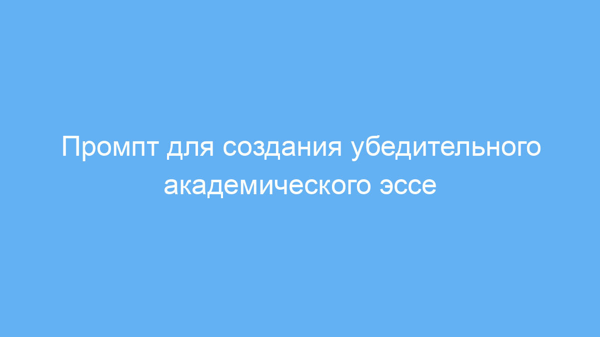 Этот промпт предназначен для студентов, преподавателей и всех, кто хочет быстро и качественно подготовить академическое эссе. Он помогает структурировать текст, подобрать надежные доказательства и правильно оформить ссылки. Благодаря этому снижается время на поиск и анализ информации, а сам текст становится более убедительным и правильным с точки зрения академических стандартов.