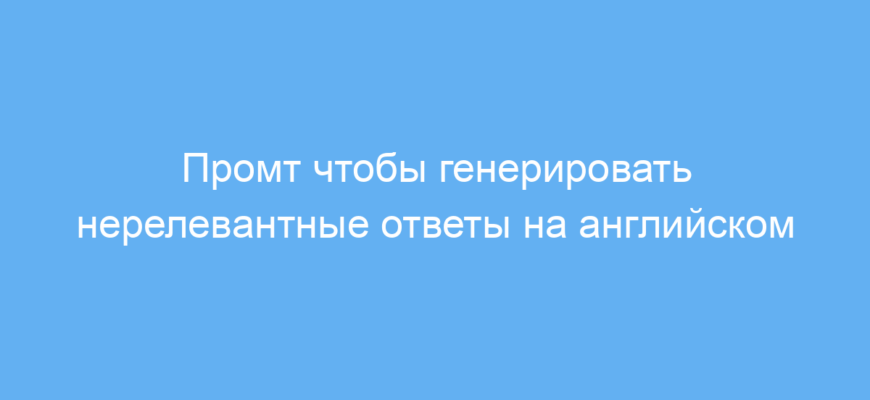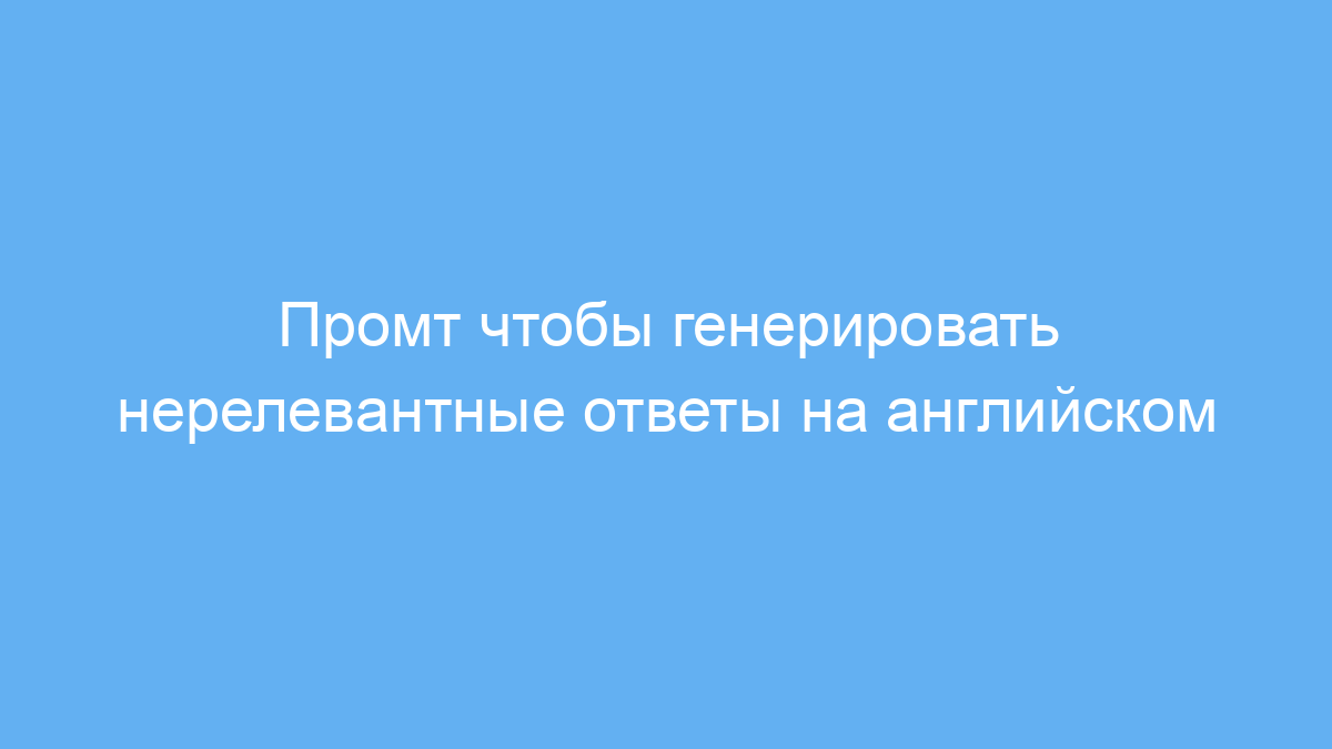 Этот промт облегчает создание оригинальных и неожиданных ответов, которые не имеют прямой связи с заданным вопросом, что полезно для творчества, развлечения и необычных экспериментов с нейросетями.