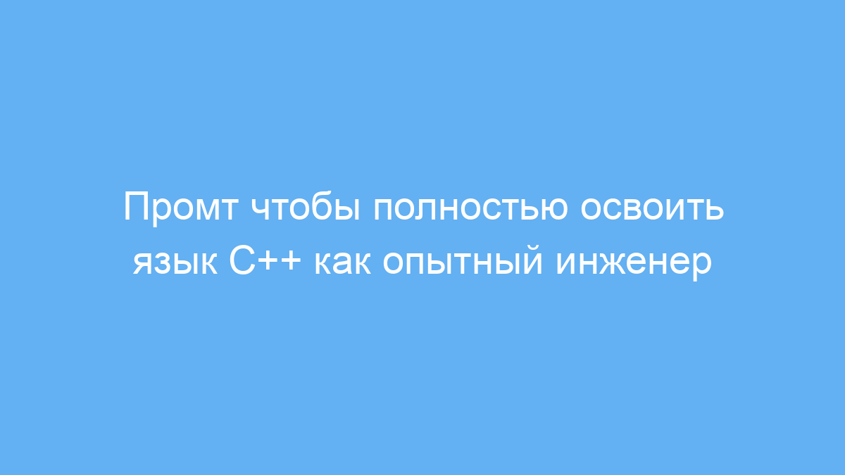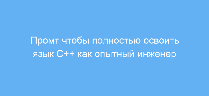 Он помогает систематизировать знания, получить структурированные объяснения и пошаговое руководство по изучению сложных тем C++. Используя этот промт, пользователь получает ответы и рекомендации от «виртуального» опытного инженера по C++, который ведёт процесс обучения и помогает разбираться с ключевыми аспектами языка.