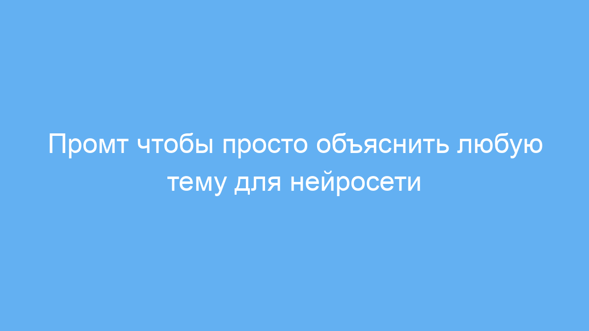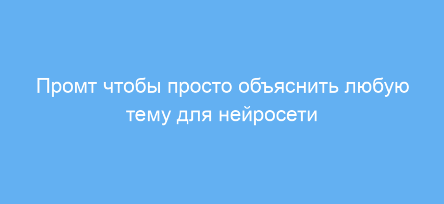 Этот промт создан для тех, кто хочет получить простое и понятное объяснение любой сложной темы с помощью нейронной сети. Он отлично подойдёт студентам, школьникам, преподавателям или просто любопытным людям, которым иногда сложно разобраться в технических или специфических понятиях.
