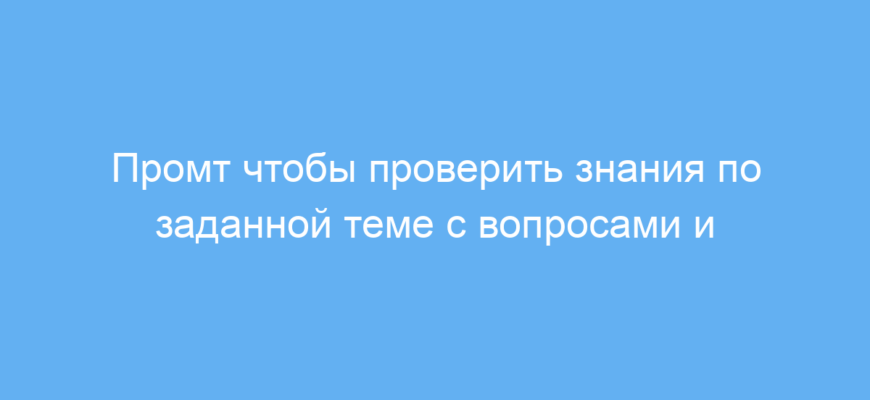 Этот промт экономит время и делает изучение темы интерактивным и эффективным. Он помогает не только проверить знания, но и понять ошибки, благодаря чему пользователь закрепляет материал лучше, чем при классическом тестировании.
