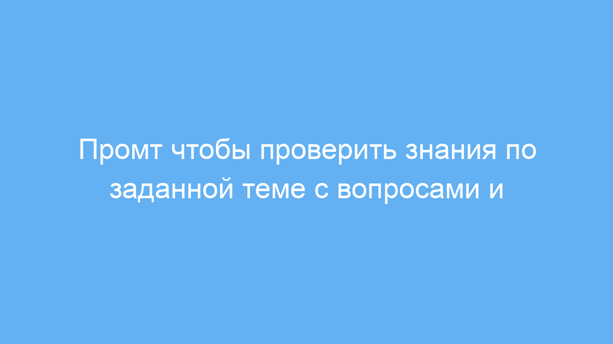 Этот промт предназначен для тех, кто хочет эффективно проверить и улучшить свои знания по любой теме. Он полезен студентам, преподавателям, а также всем, кто занимается самообразованием и стремится углубить понимание материала.