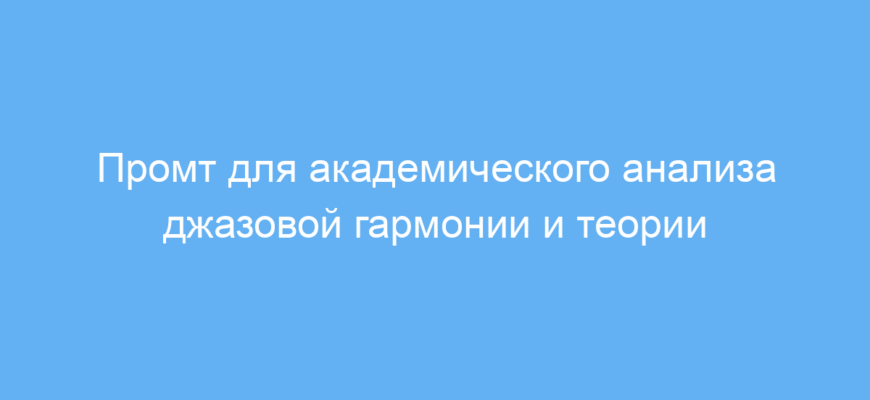 Использование этого промта значительно упрощает и ускоряет процесс глубокого анализа джазовой гармонии с научным подходом. Он помогает лучше понять тонкости аккордов, предлагает альтернативные решения и облегчает обучение и композицию в стиле джаз. Такой инструмент будет полезен как продвинутым музыкантам, так и тем, кто только начинает углублённо изучать джазовую гармонию.
