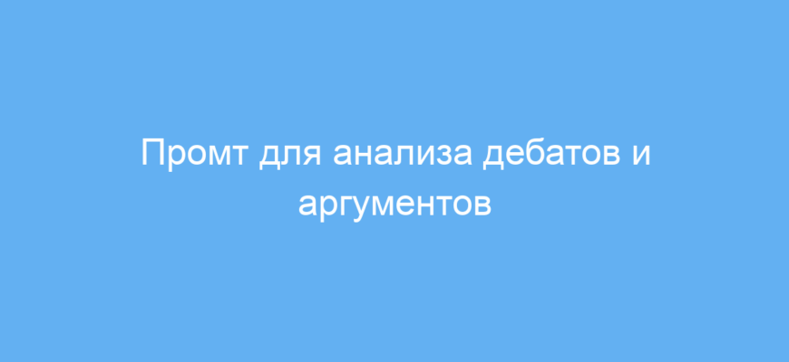 Используйте промт, когда необходимо получить взвешенный и детализированный обзор спорных вопросов. Он подойдет для подготовки докладов, эссе, аналитических материалов и учебных заданий.