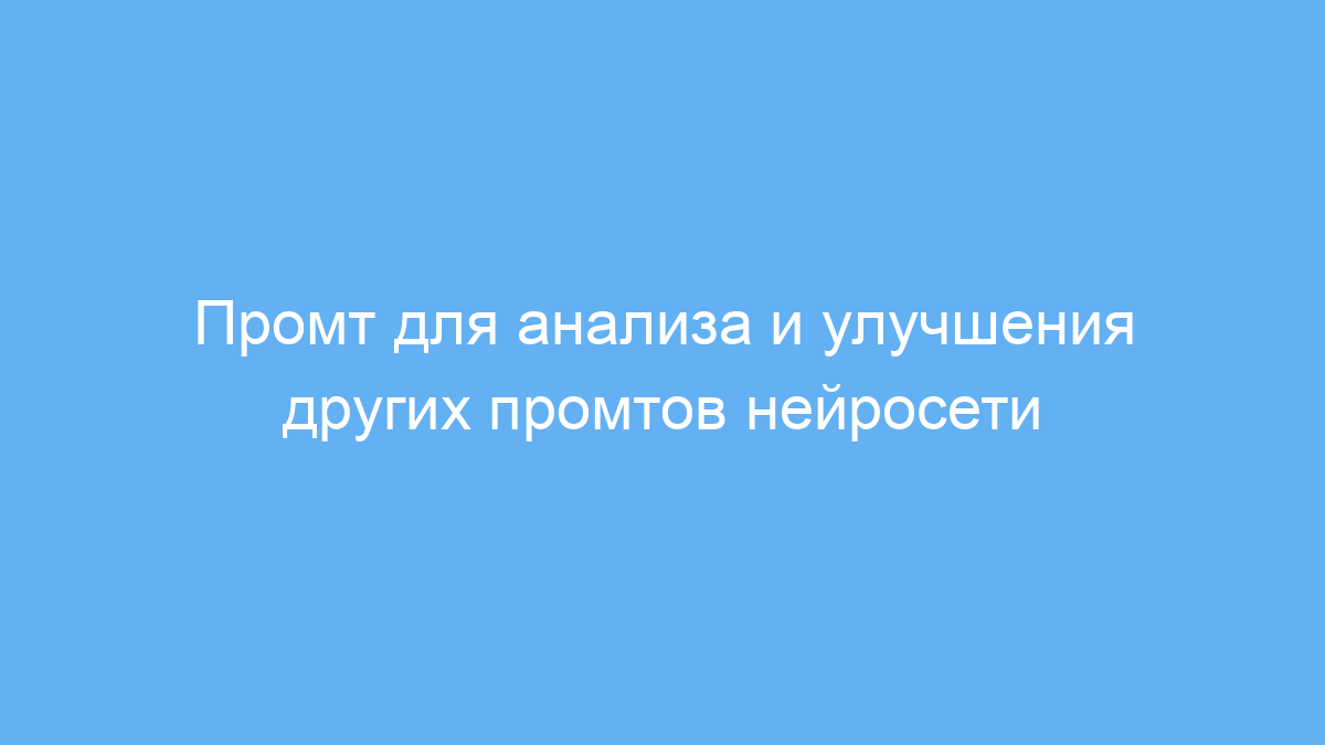 Промт решает задачи глубокой проверки промтов по заданным критериям, сокращения неоднозначности и избыточных элементов. Он позволяет получить структурированный анализ с четкими рекомендациями, что повышает точность и полезность итогового результата от нейросети.