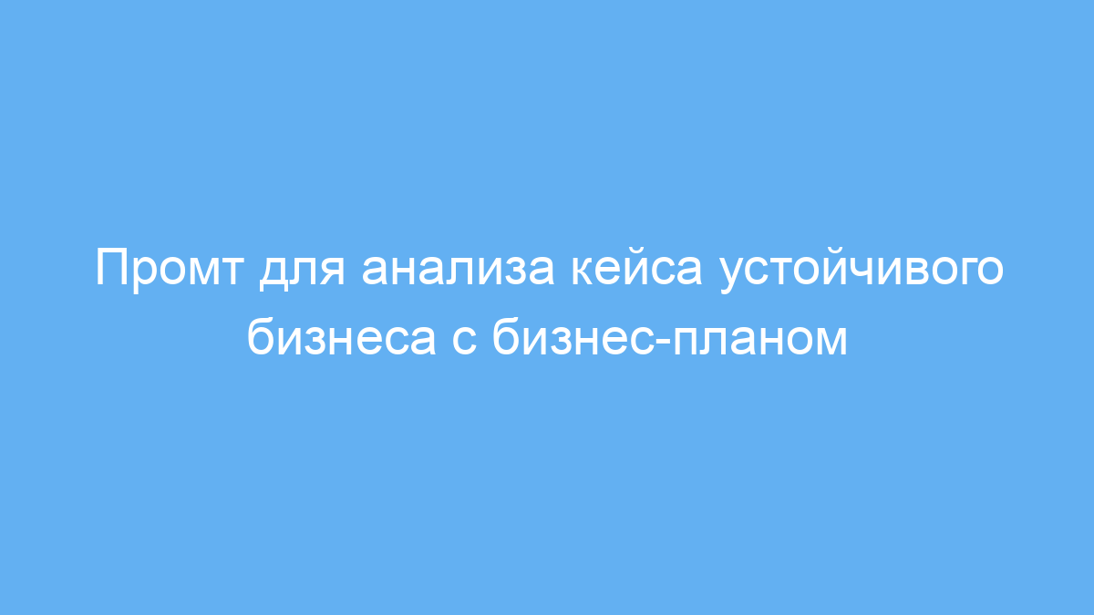 Этот промт предназначен для начинающих предпринимателей, студентов, исследователей и специалистов в области устойчивого развития, которые хотят создать или изучить устойчивую бизнес-идею. Он помогает сформировать подробный бизнес-анализ с учётом социальной и экологической ответственности.