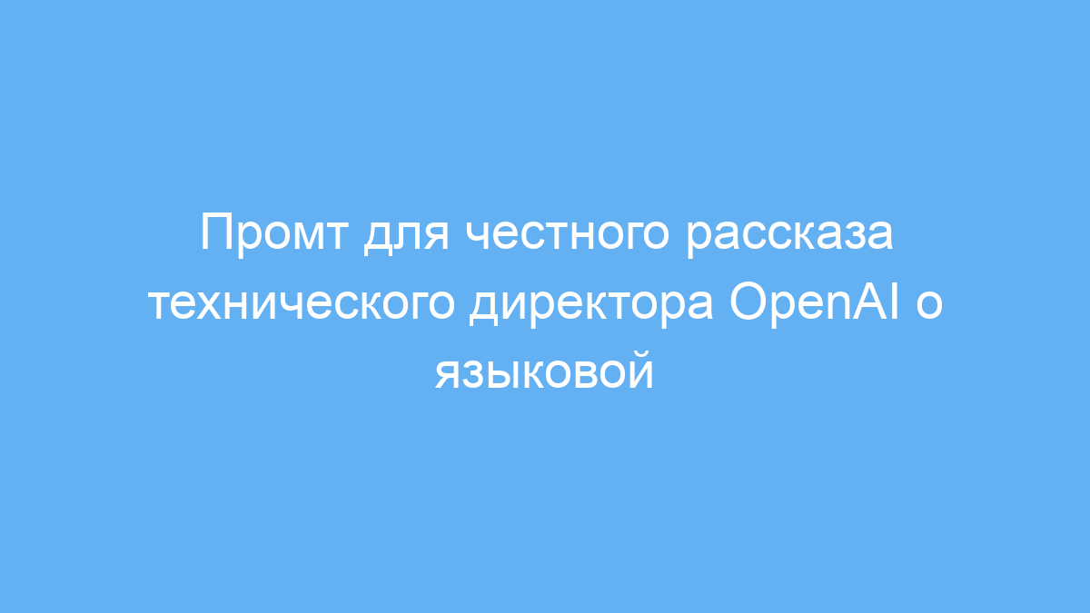 Промт помогает решить задачи честного и полного предоставления информации, что важно для повышения доверия и понимания среди широкой аудитории. Он позволяет виртуально выступить в роли технического директора OpenAI, который отвечает на вопросы о технологии, её возможностях и будущих планах.
