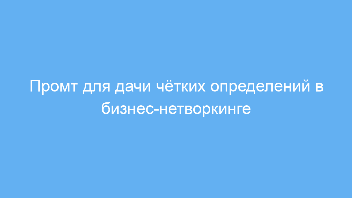 Промт предлагает нейросети выступить в роли гида по бизнес-нетворкингу и партнёрствам. Он задаёт чёткую задачу — формулировать только определения терминов, исключая объяснения и примеры. Это упрощает восприятие и позволяет удобно использовать полученную информацию в любых деловых или учебных целях.