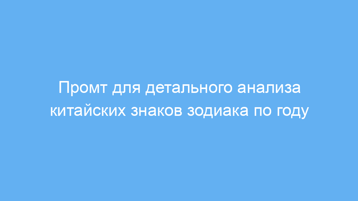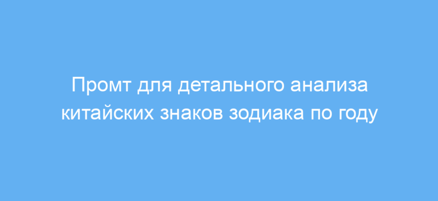В основе работы промта лежит анализ информации о 12 китайских знаках, каждый из которых связан с определенными качествами и влияниями на судьбу человека, рожденного в соответствующий год. Пользователь указывает год рождения (или знак), и нейросеть формирует подробное описание по основным категориям.