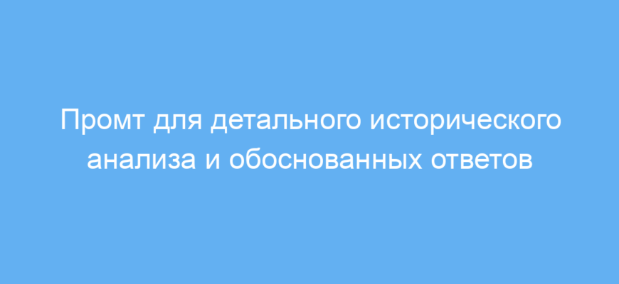 Использование этого промта позволяет получать хорошо структурированные, разносторонние и обоснованные ответы на сложные исторические и академические вопросы. Это экономит время на поиск информации и помогает взглянуть на проблему с разных углов зрения, что полезно для учебы, научных исследований и глубокого самообразования.