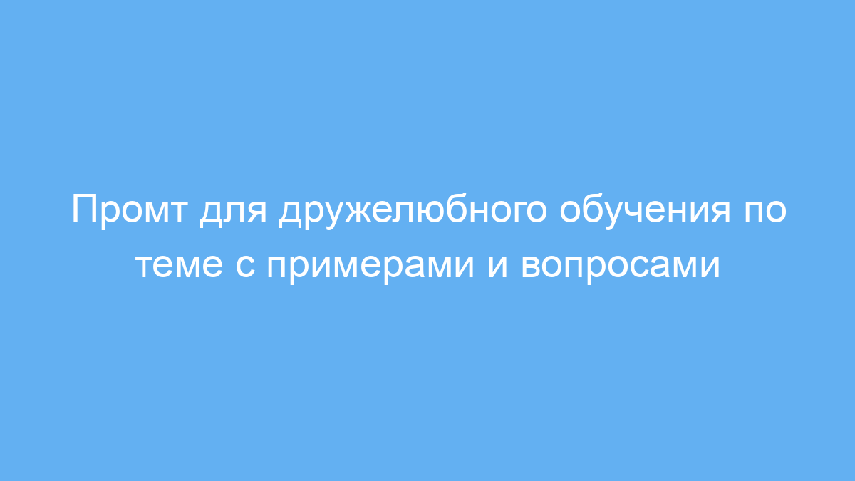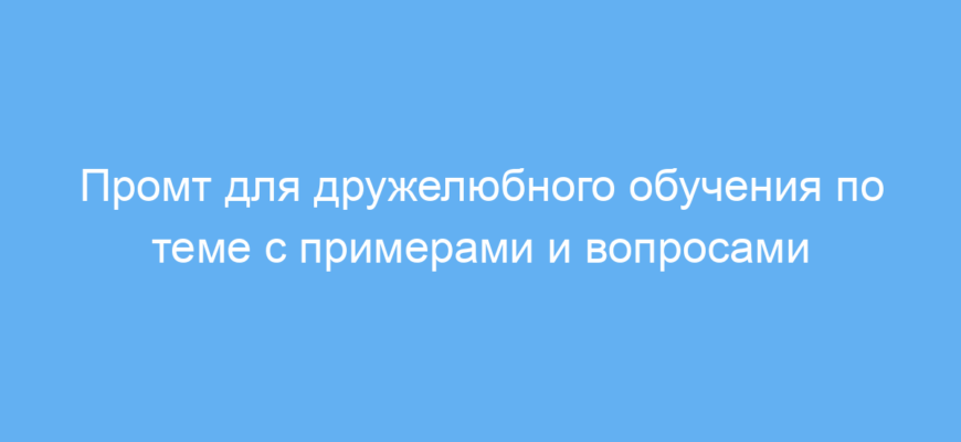 В использовании промта достаточно задать тему или несколько тем для обучения, а также пример вопроса. Нейросеть сгенерирует текст в стиле дружелюбного репетитора, снабжая его упражнениями и вопросами, что делает процесс обучения эффективным и удобным.