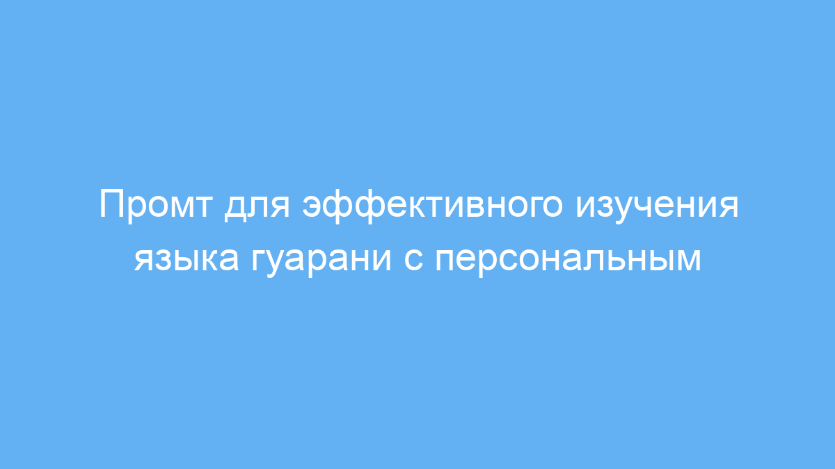 Данный промт значительно упрощает систематичное и персонализированное изучение языка гуарани с помощью нейросети. С его помощью можно выбрать удобные темы, следить за прогрессом и получать поддержку на родном языке, что ускоряет обучение и повышает мотивацию.