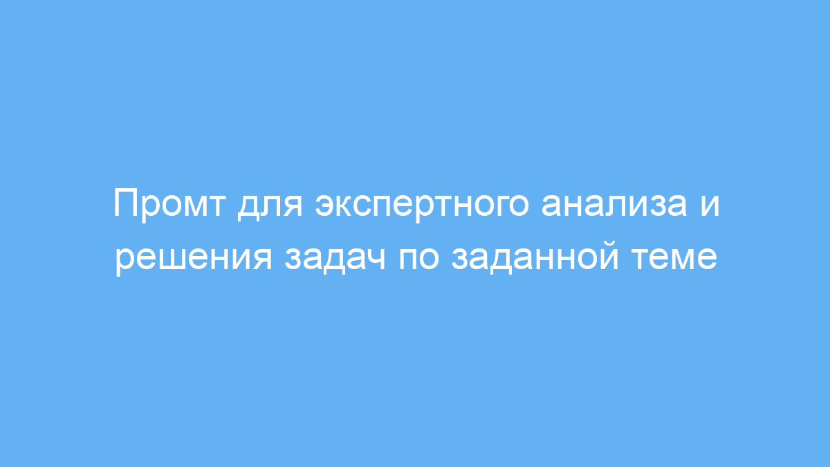Этот промт предназначен для пользователей, которым необходим подробный и технический разбор определённых тем в рамках профессиональной деятельности или учёбы. В первую очередь он полезен экспертам, преподавателям, аналитикам и специалистам, которые хотят получить глубокое понимание сложных вопросов, а также получить конкретные рекомендации для решения проблем.