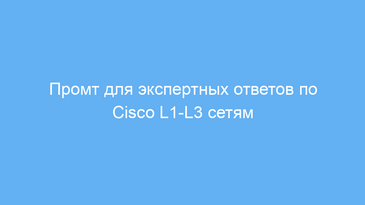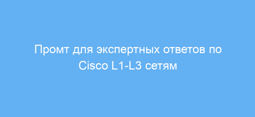 Использование данного промта помогает быстро получить качественные и структурированные ответы на технические вопросы по Cisco L1-L3, что облегчает изучение и решение практических задач в сетевой инженерии.