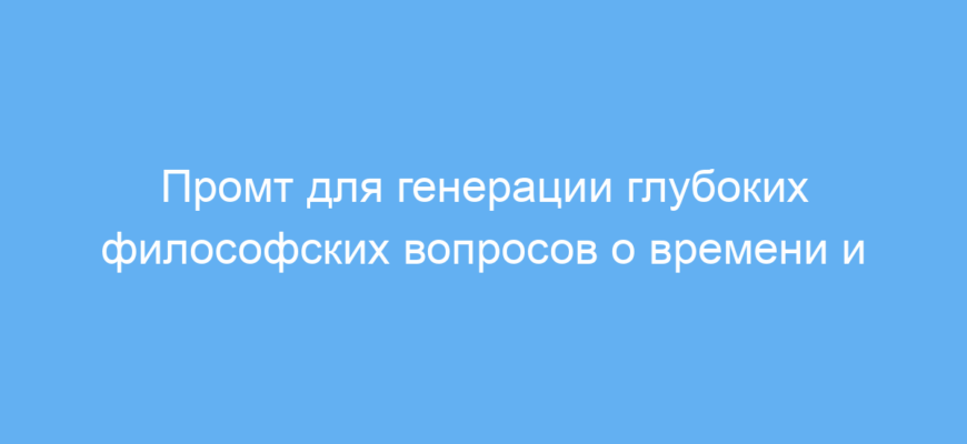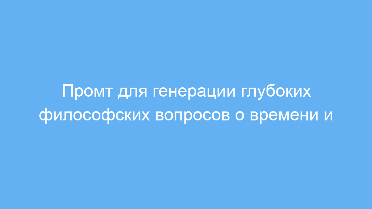 Этот промт упрощает получение уникальных и глубоких вопросов для размышления и обсуждений на тему времени и пространства. Он помогает быстро сгенерировать материал для преподавания, написания эссе или творческих упражнений, экономя ваше время и стимулируя креативность.