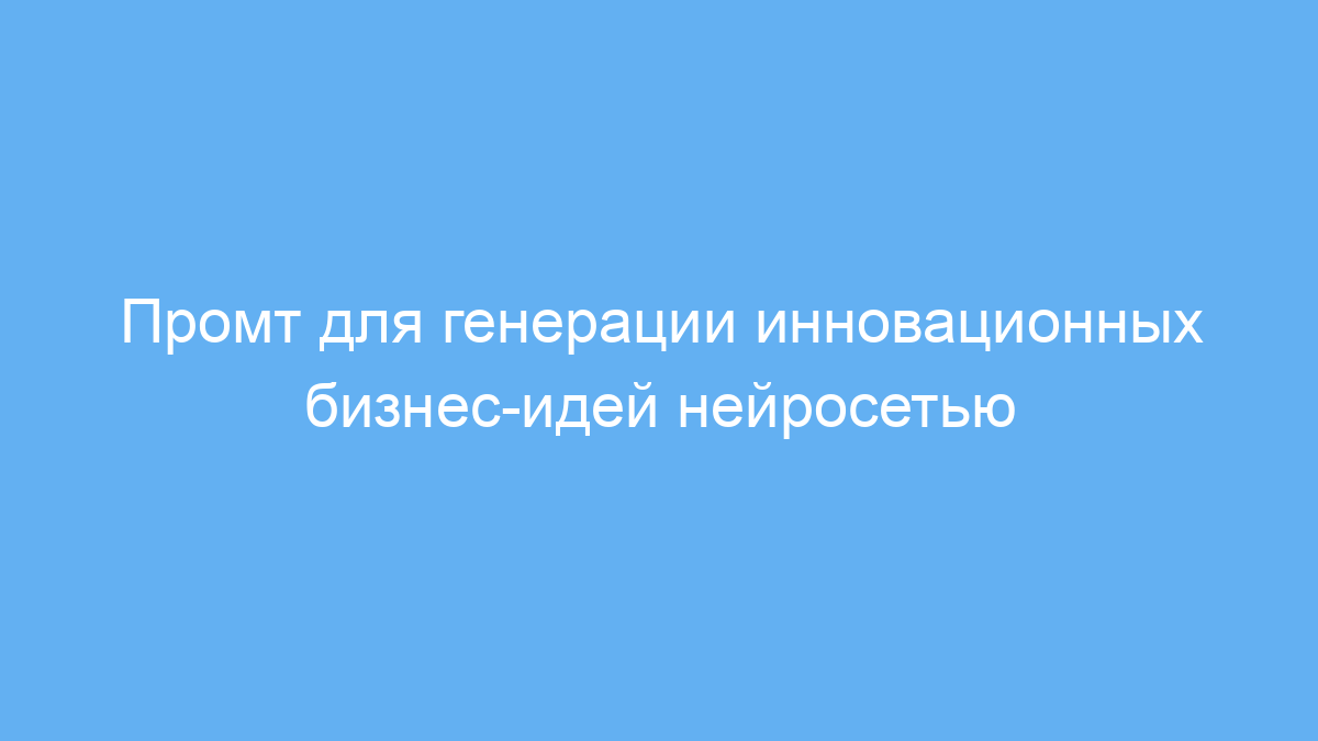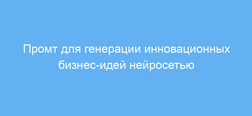 Промт формирует запрос к нейросети, которая анализирует тренды, технологии и рыночные потребности, а затем предлагает пять оригинальных бизнес-концепций с описанием влияния каждой на отрасль. Использовать такой промт легко и удобно — достаточно вставить его в интерфейс нейросети и получить результат.