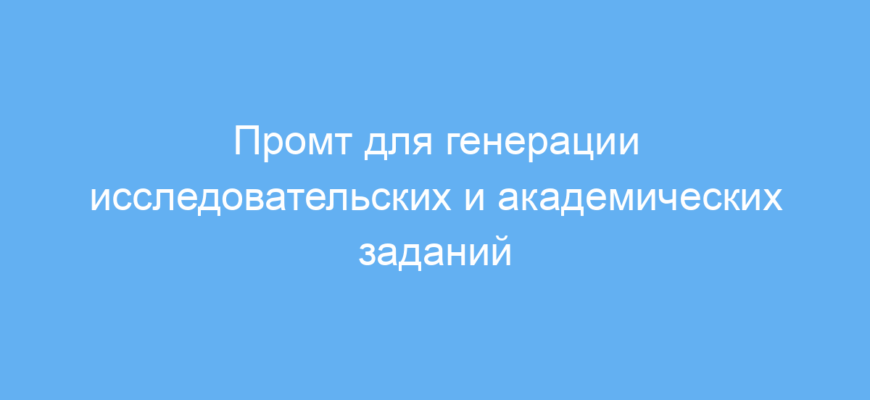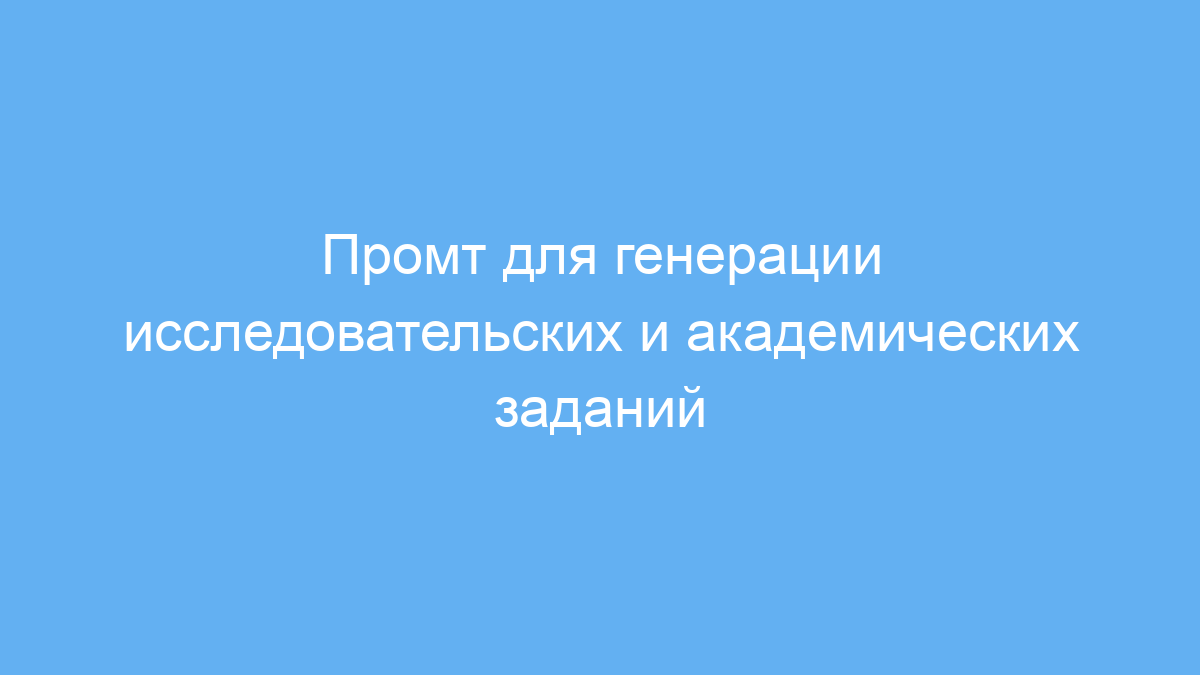 Использование этого промта помогает быстро и чётко формулировать задания для исследовательских и академических работ. Он гарантирует структуру и полноту задания, облегчая работу с нейросетью и экономя время на подготовку качественных заданий.