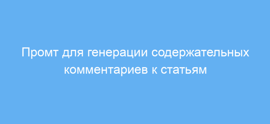 Использование этого промта позволяет получать качественные, аналитические и содержательные комментарии, которые показывают глубину понимания и помогают улучшать текст. Он освобождает пользователя от составления отзывов самостоятельно и делает процесс взаимодействия с материалом более продуктивным.
