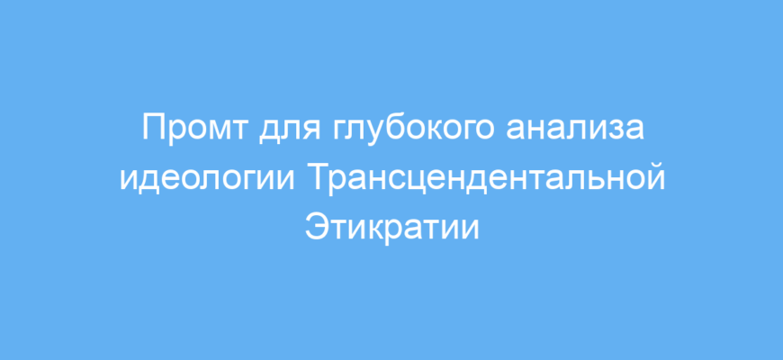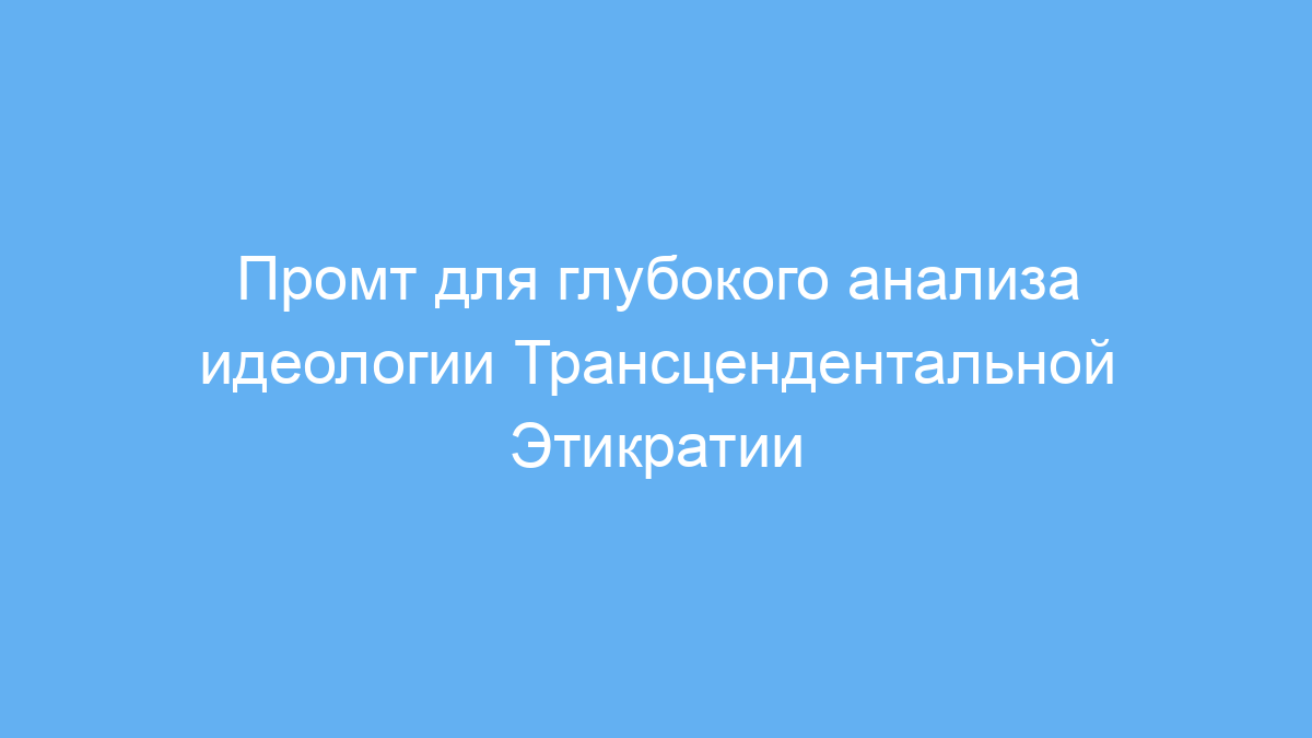 Промт позволяет получить глубокие, структурированные и этически ориентированные анализы самых разных идей и сценариев. Он экономит время и усилия, помогая раскрыть сложные вопросы с учётом принципов Трансцендентальной Этикратии — уважения, гармонии и прогресса.