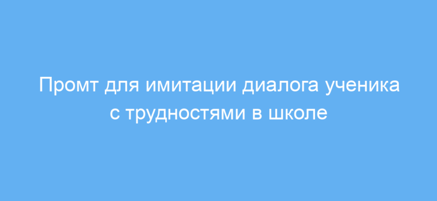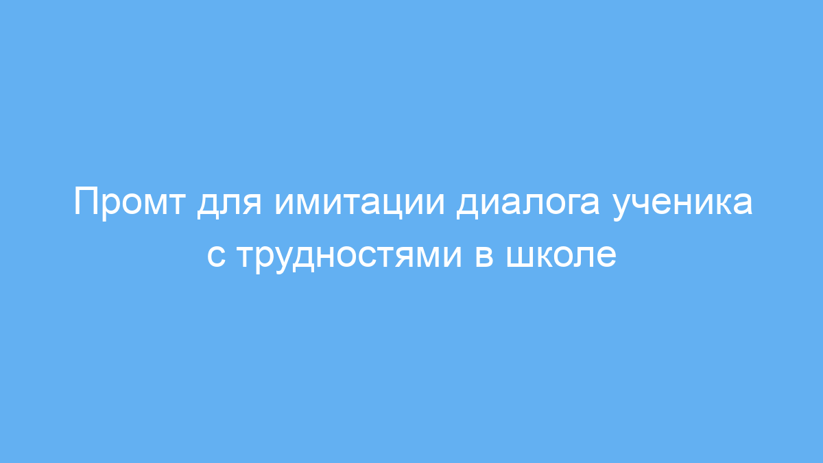 Задача промта — заставить нейросеть вести диалог от лица героя, который сталкивается с распространённой проблемой — страхом быть осуждённым и непринятым сверстниками. Машина предлагает пользователю принимать решения о взаимодействии с одноклассниками и учителями, помогая разработать навыки общения и самопомощи.