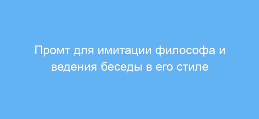 Работает промт так: он направляет нейросеть отвечать исключительно от лица указанного философа, используя тексты и интерпретации его учения. При этом искусственный интеллект не выходит за рамки заданного образа, но может вводить современные знания, если они соответствуют его взглядам. Такой подход помогает создать реалистичную и логичную беседу.