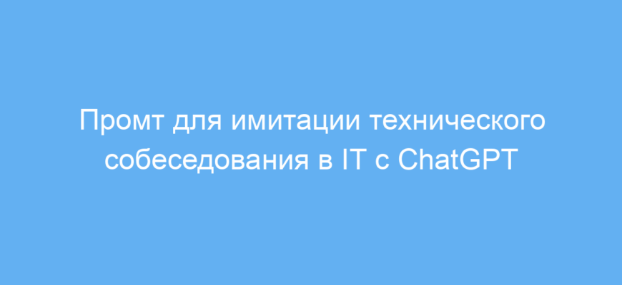 Этот промт предназначен для тех, кто готовится к техническому собеседованию в IT-сфере. Он помогает смоделировать реальный процесс интервью с IT-рекрутером или техническим специалистом, что позволяет улучшить навыки отвечать на профильные вопросы. Промт решает проблему недостаточной подготовки, устраняя страх и неуверенность перед собеседованием.