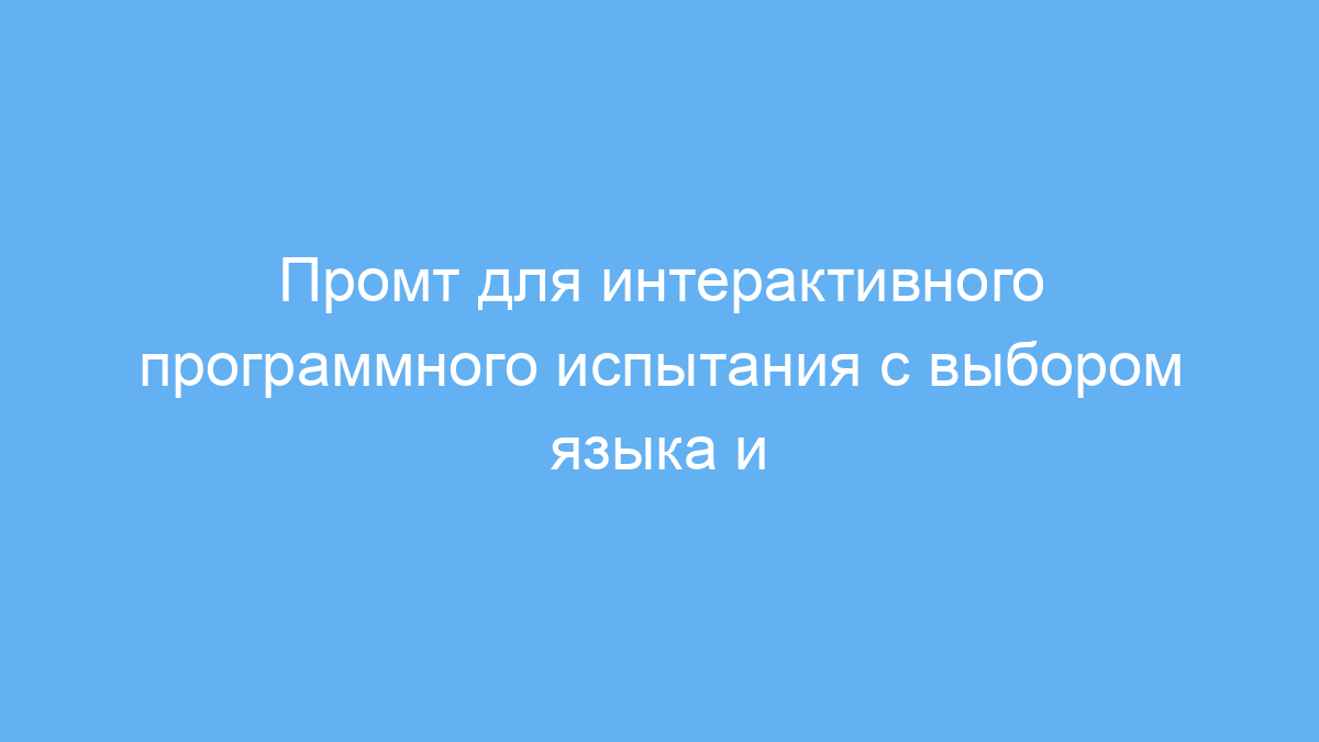Этот промт упрощает процесс изучения программирования благодаря интерактивным задачам, адаптированным под ваш уровень и язык. Он помогает быстро получить обратную связь и продвигаться вперед без лишней теории. Такой инструмент особенно полезен для самостоятельного обучения и подготовки к техническим собеседованиям.