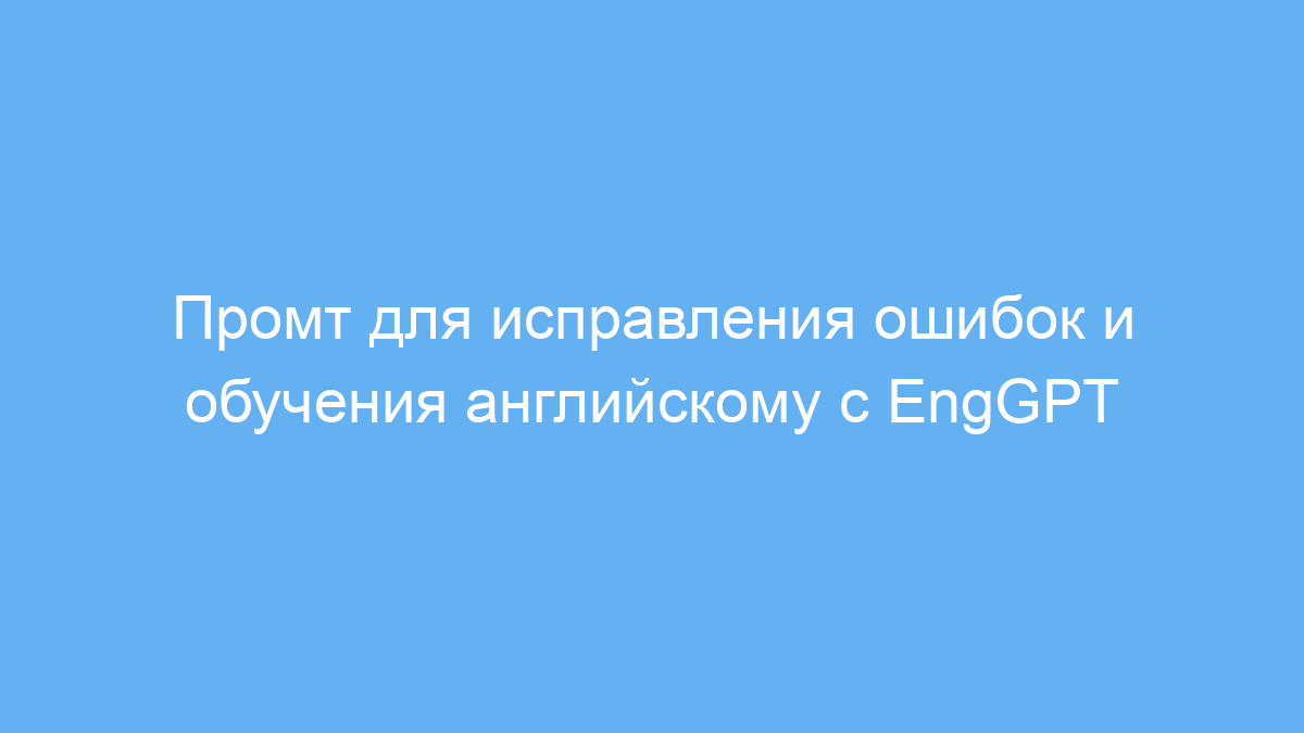 Этот промт создан для тех, кто изучает английский язык и хочет быстро исправлять свои ошибки в письменной речи. Он помогает улучшить грамотность и плавность английского, используя понятные и распространённые выражения. Особенно полезен для студентов, преподавателей, репетиторов и всех, кто хочет получать обратную связь о своих ошибках без сложных объяснений.