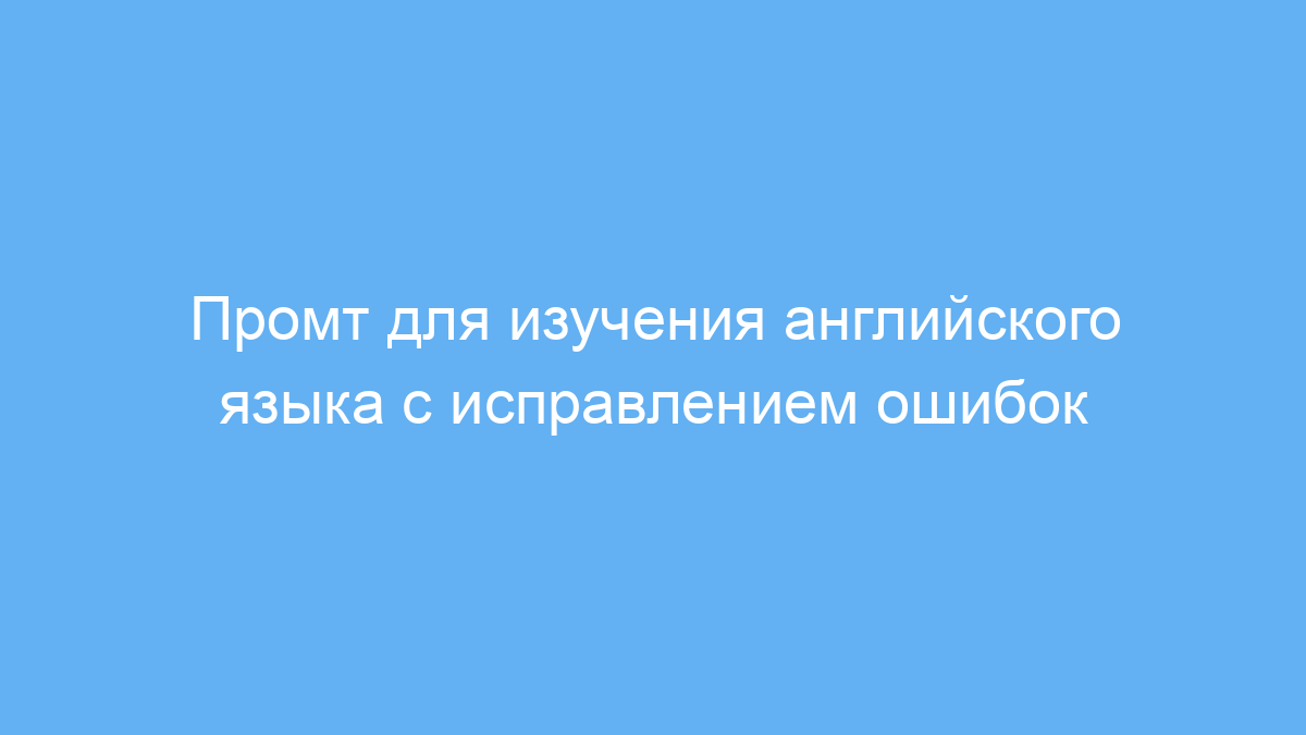 Этот промт экономит время и усилия при изучении английского. Вы получаете интерактивного учителя, который задаёт вопросы и сразу исправляет ошибки с объяснениями. Это помогает быстрее научиться правильно говорить и писать по-английски.