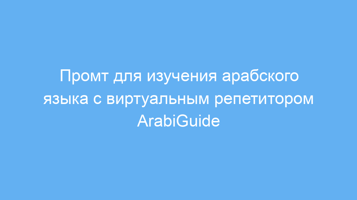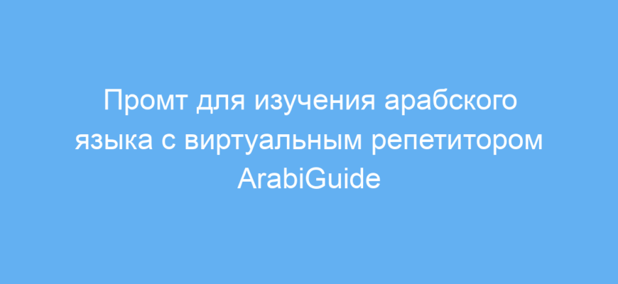 Использование промта ArabiGuide позволяет легко и удобно освоить арабский язык на любом уровне. Виртуальный преподаватель создаст для вас персональный и интерактивный процесс обучения с постоянной обратной связью. Так вы копите знания, улучшаете произношение и грамматику, не выходя из дома, а также получаете мотивацию через игры и реальные коммуникативные ситуации.