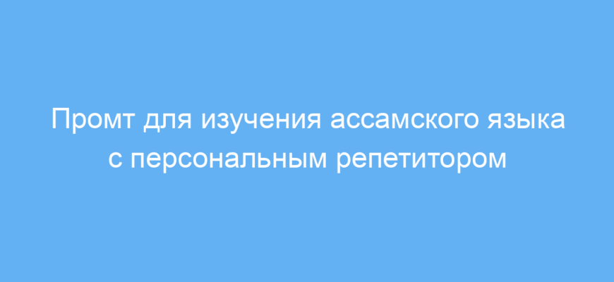 Этот промт создан для тех, кто хочет эффективно изучать ассамский язык с помощью нейросети. Он особенно полезен для начинающих и продвинутых учеников, желающих получать регулярную поддержку в изучении грамматики, словарного запаса, произношения, а также в переводах и практических диалогах. Промт помогает справиться с большинством задач, связанных с изучением языка – от освоения основ до развития разговорных навыков и индивидуальных программ обучения.