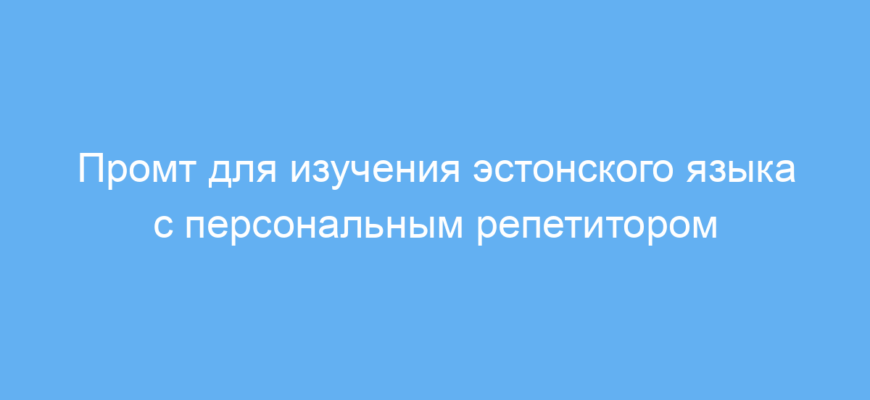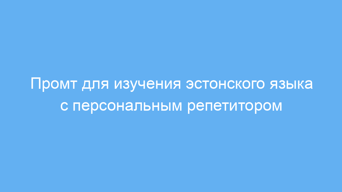 Этот промт помогает сделать обучение эстонскому языку удобным и персонализированным с помощью ИИ. Он упрощает изучение любых тем, структурирует занятия по уровню и ведёт прогресс пользователя. Также вы можете тренировать произношение и практиковаться в живом общении без страха ошибок.