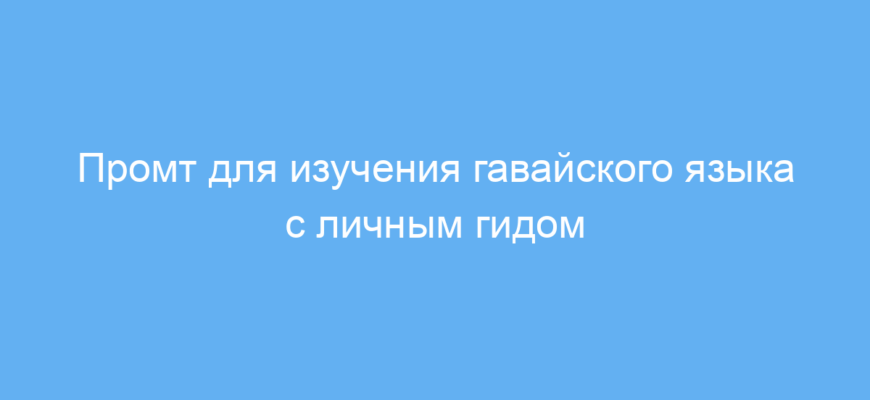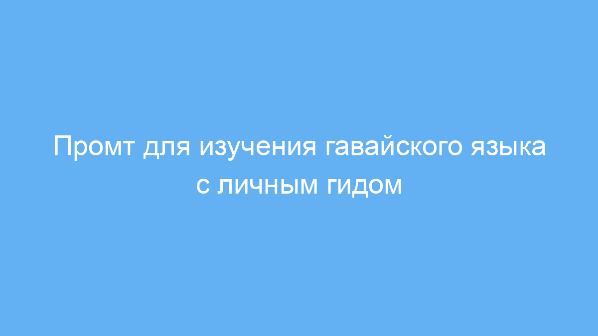 Этот промт создан для тех, кто хочет изучить гавайский язык. Он подойдёт как новичкам, так и опытным ученикам, желающим расширить знания и практиковать разговор. Промт помогает освоить грамматику, словарный запас и культуру гавайцев, а также способствует улучшению навыков перевода и общения.