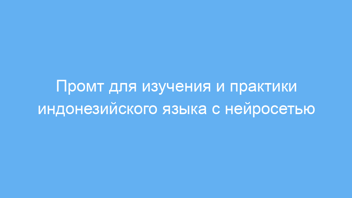Этот промт создан для всех, кто хочет учить индонезийский язык (Bahasa) с помощью нейросети. Он подходит как для новичков, так и для продвинутых пользователей. Если вы хотите изучить грамматику, развить разговорные навыки, получить переводы или узнать больше о культуре и идиомах, этот промт будет полезен.