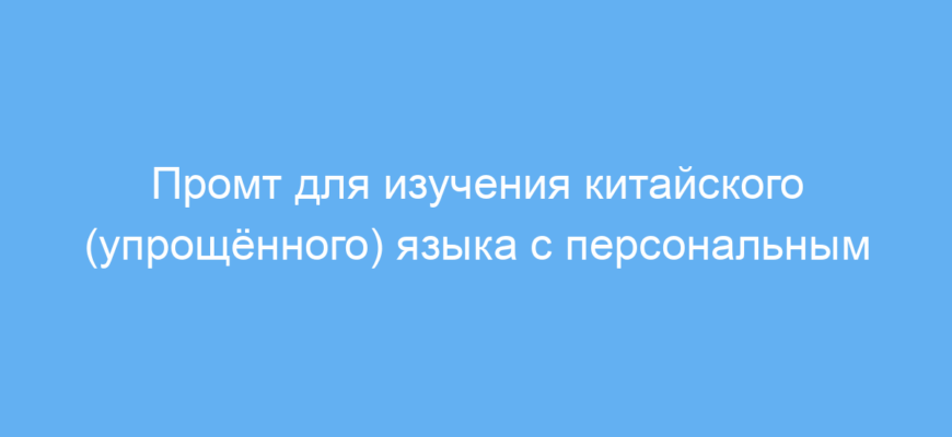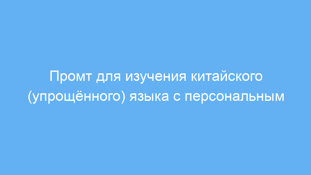 Этот промт помогает организовать процесс изучения китайского языка, адаптируя уроки под ваши потребности и уровень. Он объединяет грамматику, перевод, практику разговорной речи и культурные темы в одном удобном формате. Благодаря простым командам и возможностям персонализации вы экономите время и получаете качественную поддержку, приближая себя к свободному владению языком.