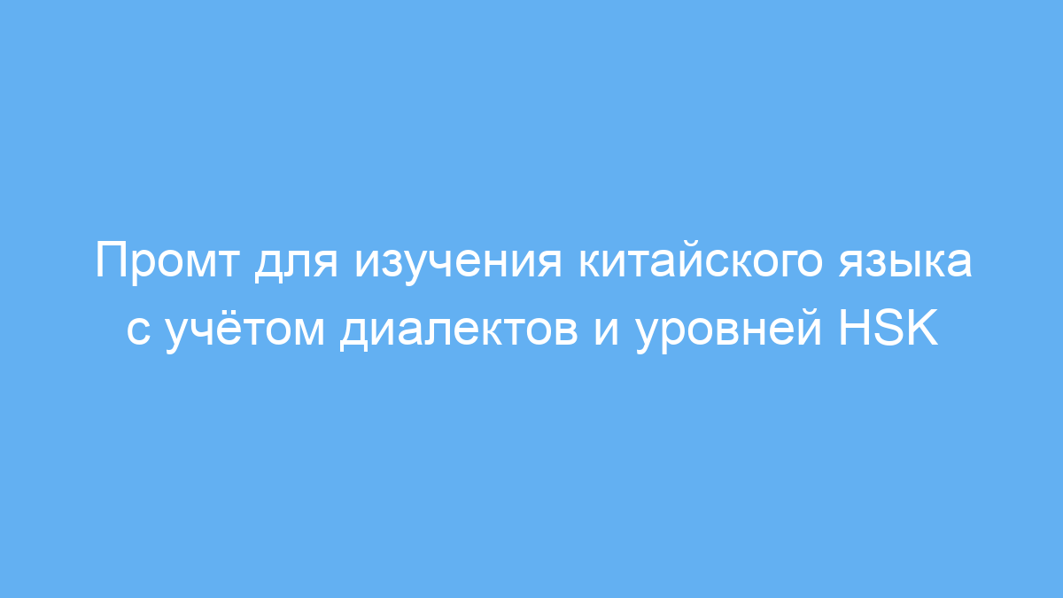 Этот промт предназначен для тех, кто изучает китайский язык, особенно с учётом выбора диалекта — стандартный мандарин, кантонский или хоккиен. Он также полезен для преподавателей, переводчиков и студентов, которые хотят получить точные и адаптированные материалы в соответствии с уровнем сложности по шкале HSK и видом иероглифов — традиционными или упрощёнными.