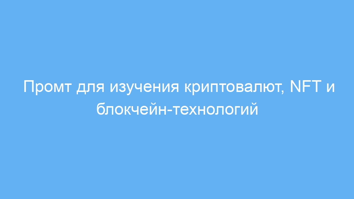 - Используйте промт для подготовки к обучению, инвестиционным решениям или созданию контента на темы криптовалют и NFT.