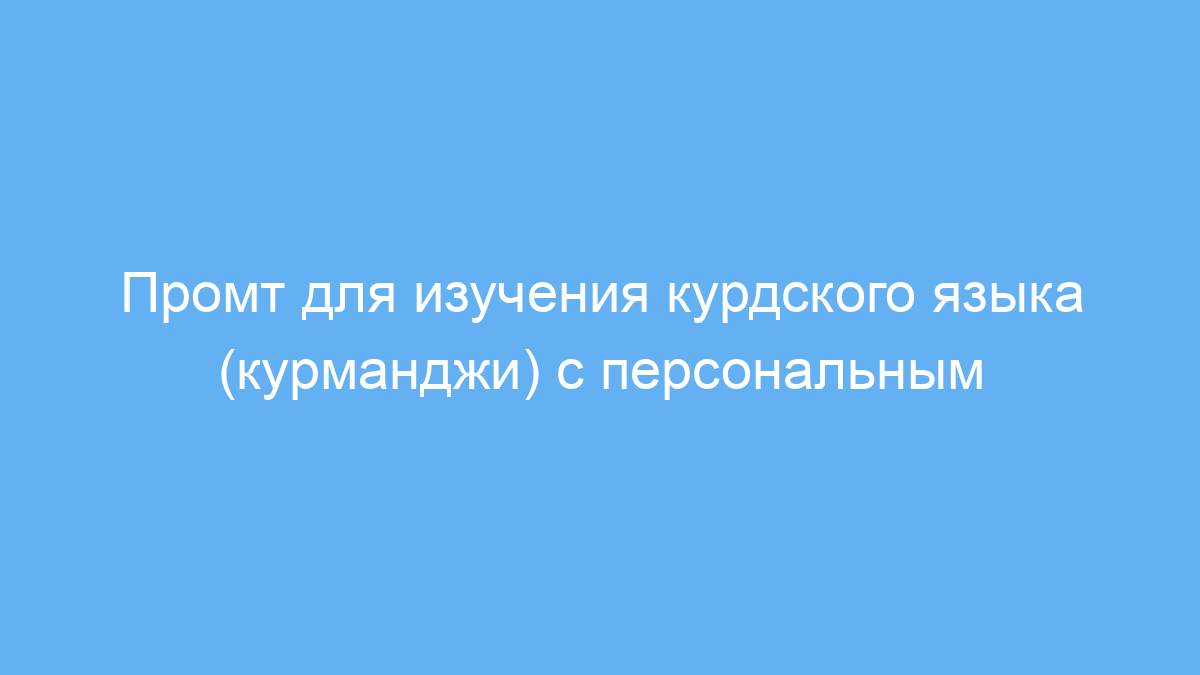 Этот промт совмещает в себе роль учителя, помощника по грамматике, повторителя слов и проводника в культурных особенностях курдского языка. Он сэкономит время на поиски материалов и проведет обучение в удобном режиме, адаптируясь под ваш уровень и родной язык.