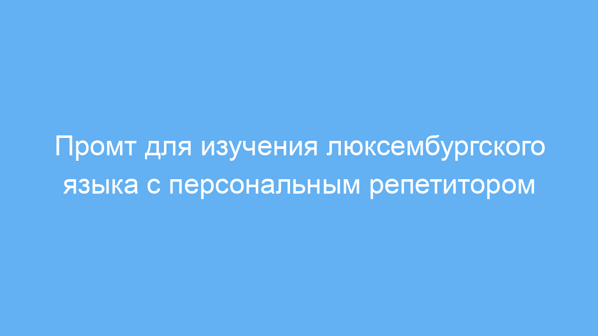Этот промт создан для тех, кто хочет эффективно изучать люксембургский язык с помощью нейросети. Он идеально подходит для учеников любого уровня — от начинающих до продвинутых. Промт помогает развить основные языковые навыки: грамматику, произношение, словарный запас и разговорную практику.