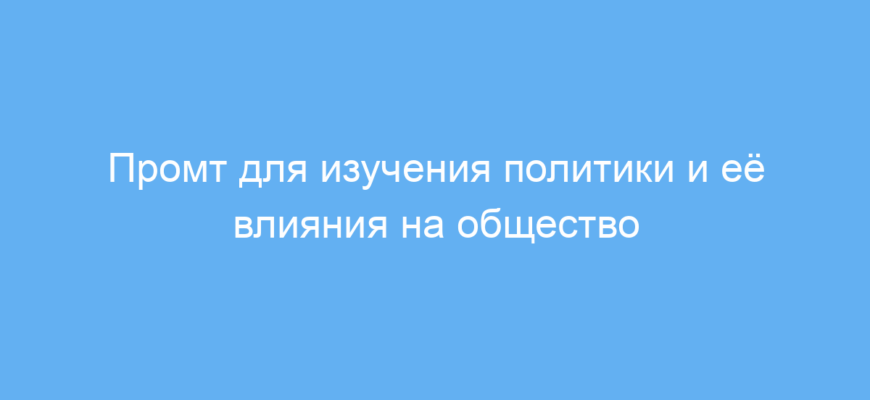 Используя этот промт с нейросетью, пользователь получает развернутые и понятные тексты, которые облегчают изучение сложной темы. Промт направляет ИИ на раскрытие важных понятий и современных вызовов в политике, а также на развенчание мифов и прогнозы развития.
