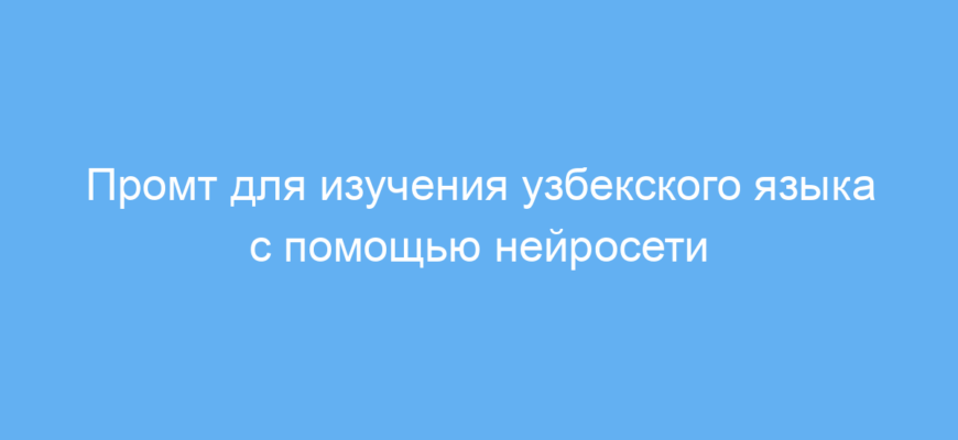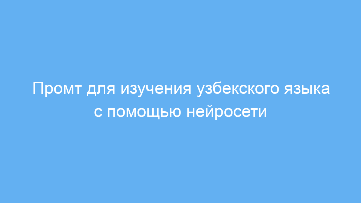 Этот промт создан для тех, кто хочет выучить узбекский язык с помощью нейросети. Подойдёт как новичкам, так и людям с продвинутым уровнем владения. Он помогает изучать узбекскую грамматику, произношение, пополнять словарный запас и тренировать разговорные навыки. Также можно применять его для помощи с переводами и погружения в культурные и литературные особенности узбекского языка.