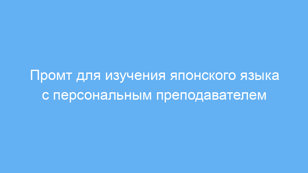 Этот промт предназначен для всех, кто хочет эффективно учить японский язык: от начинающих до продвинутых. Он помогает решить проблемы с изучением грамматики, словарного запаса, произношения, а также с переводами и практикой разговорной речи. Промт выступает как виртуальный учитель, «персональный преподаватель японского языка», который адаптирует уроки под уровень и нужды пользователя.