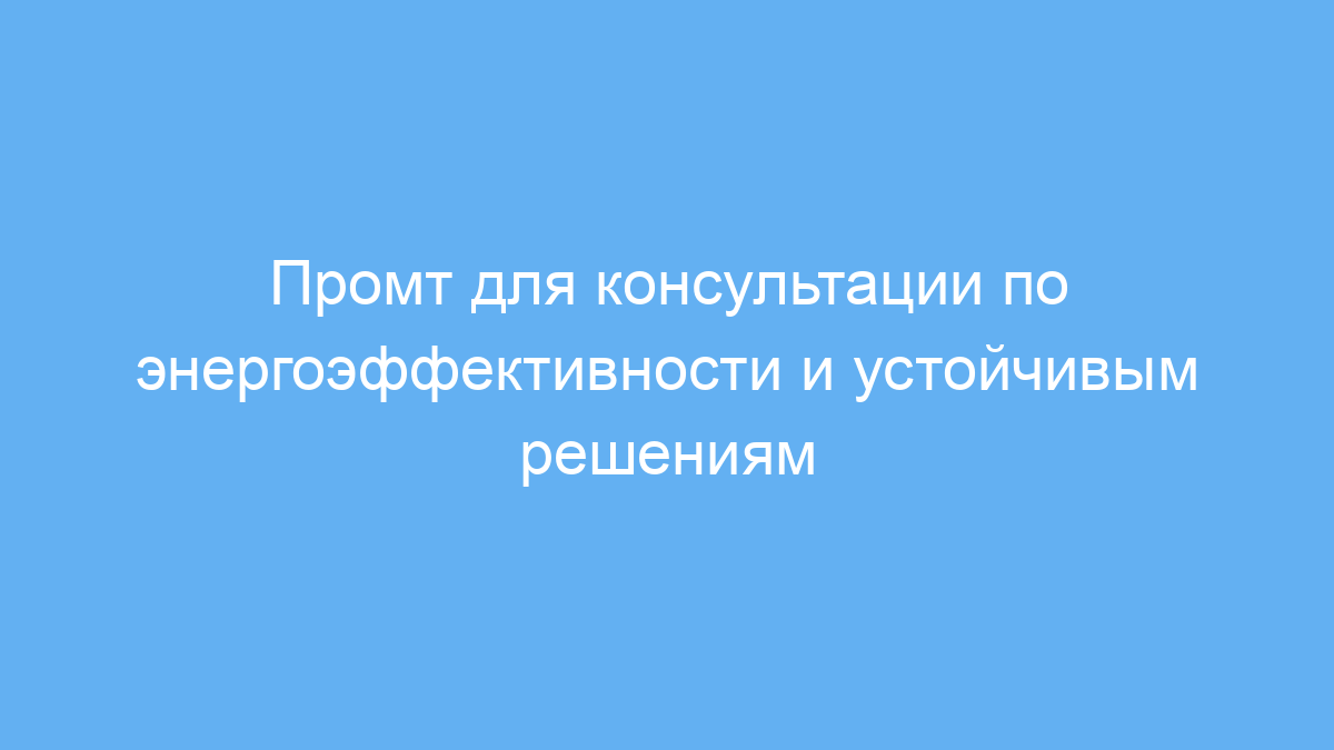Принцип работы промта очень прост: вы задаёте ему информацию о вашем доме и регионе, а нейросеть выступает в роли личного консультанта-эксперта. Она анализирует данные, учитывая актуальные тенденции и технологии энергоэффективности, и выдает адаптированные советы для вашего жилья. Если данных недостаточно, промт предусматривает возможность запроса дополнительной информации.