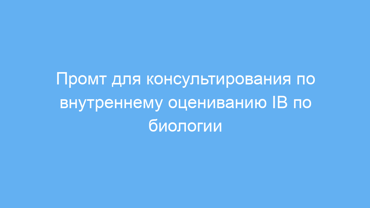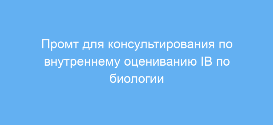 Этот промт предназначен для консультантов и наставников студентов, которые проходят внутреннее оценивание (Internal Assessment, IA) по биологии в программе Международного бакалавриата (IB). Его основное назначение — помогать советами и рекомендациями в процессе подготовки IA, облегчая выбор темы, формулировку вопросов и организацию работы в соответствии с требованиями IB.