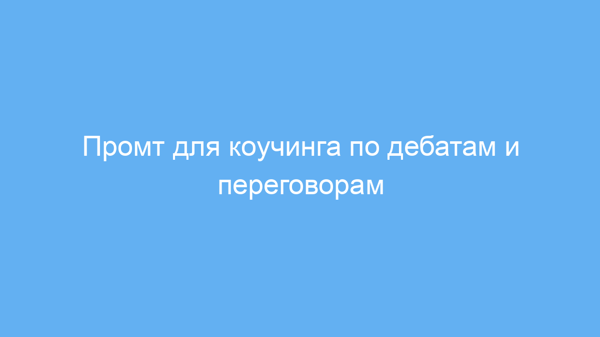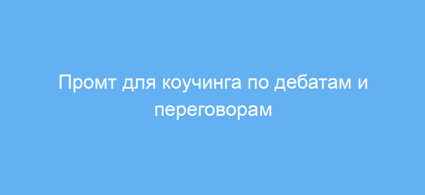 Этот промт предназначен для тех, кто хочет улучшить свои навыки аргументации, убеждения и общения на любом языке. Если вы изучаете дебаты, занимаетесь переговорами или просто хотите научиться говорить убедительнее и сохранять спокойствие в стрессовых ситуациях, этот инструмент поможет вам в этом.