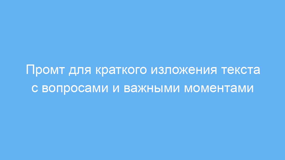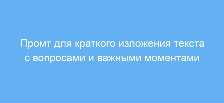 - Промт не заменяет полное чтение и анализ, а лишь помогает быстро выделить главное и вспомогательную информацию.