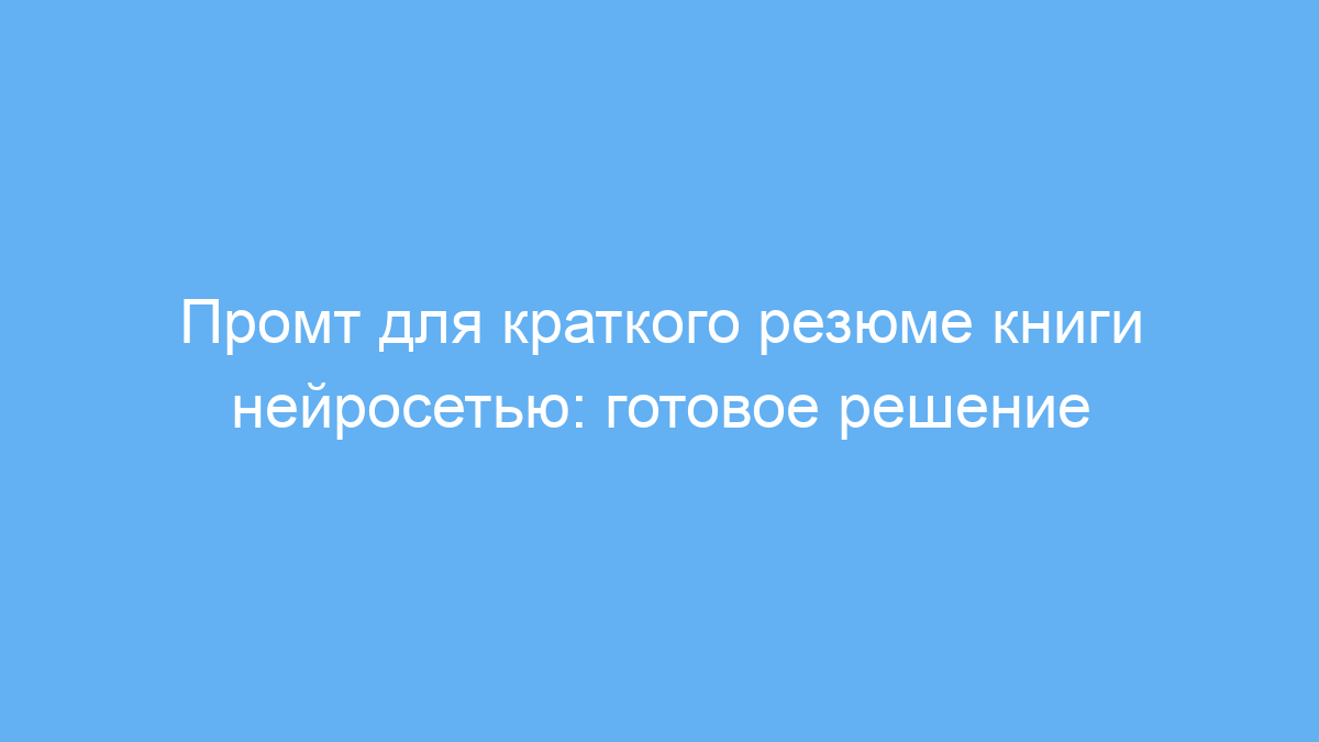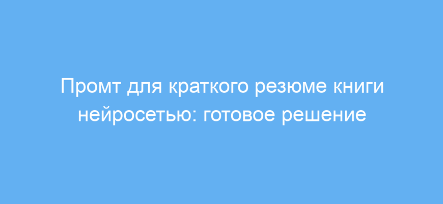 Этот промт предназначен для тех, кто хочет быстро получить структурированное и информативное резюме книги с помощью нейросети. Он полезен студентам, исследователям, блогерам, журналистам и всем, кто занимается изучением литературы или созданием контента. Благодаря ему можно сократить время на чтение полного текста и выделить главные мысли и идеи произведения.
