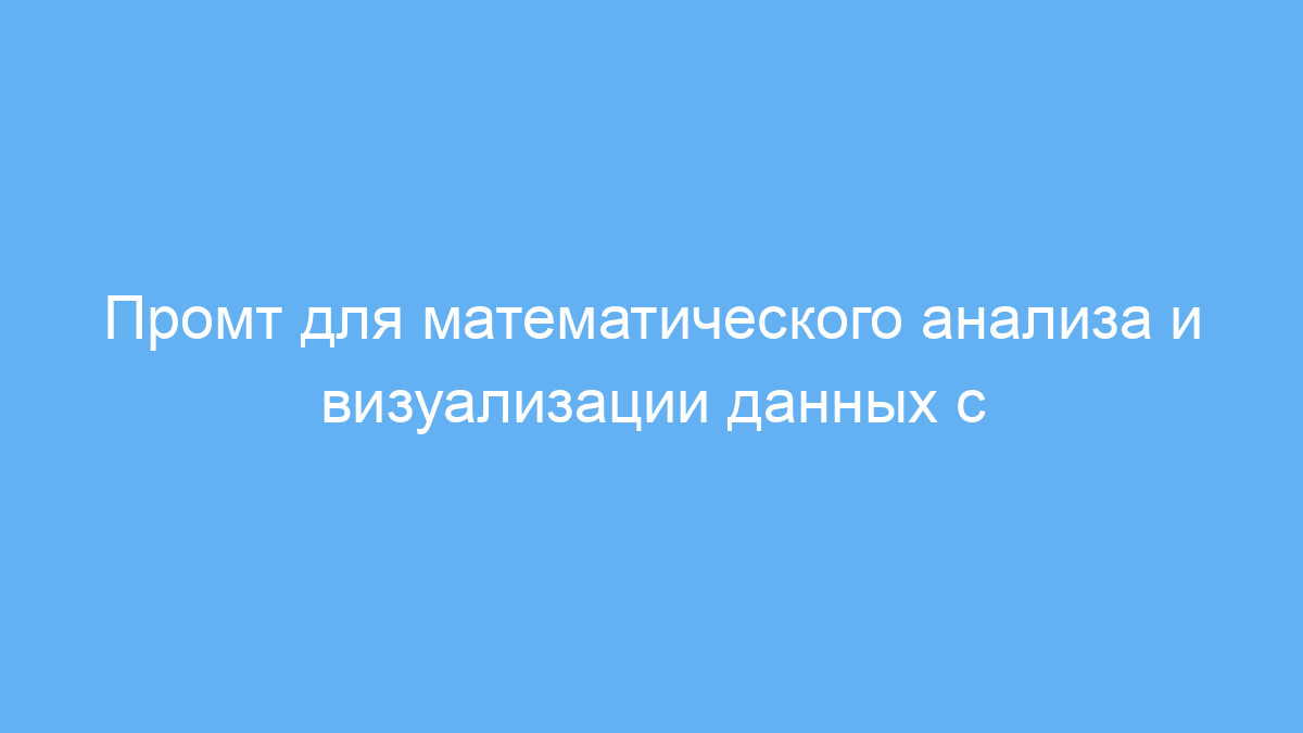 Промт помогает легко понимать математику, быстро анализировать большие наборы данных и строить наглядные диаграммы. Вы просто формулируете задачу — например, объяснить формулу, найти инсайты в таблице или создать график — и AI-помощник даёт подробный, понятный ответ с примерами и рекомендациями.