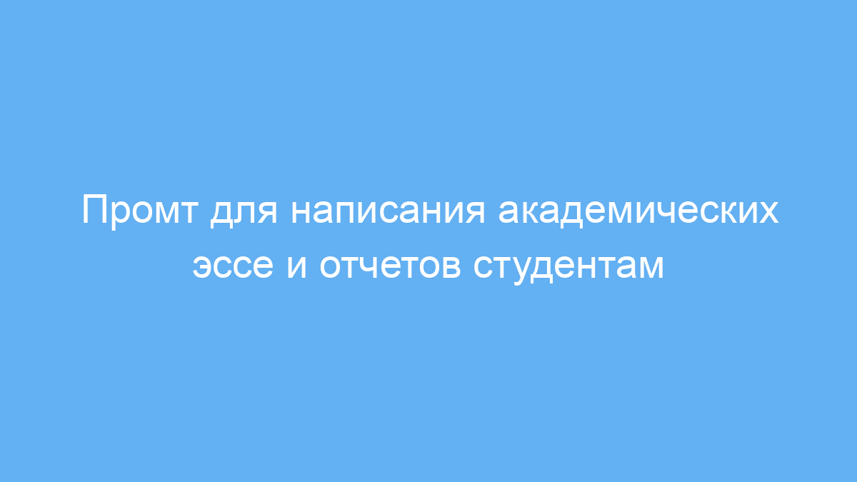 Промт помогает решить главные проблемы при написании учебных работ — отсутствие времени, затруднения с оформлением и структурированием текста, а также необходимость учитывать разные стили и типы эссе. Он автоматически формирует текст нужного объема, адаптирует стиль под академические стандарты и формирует корректный список литературы.