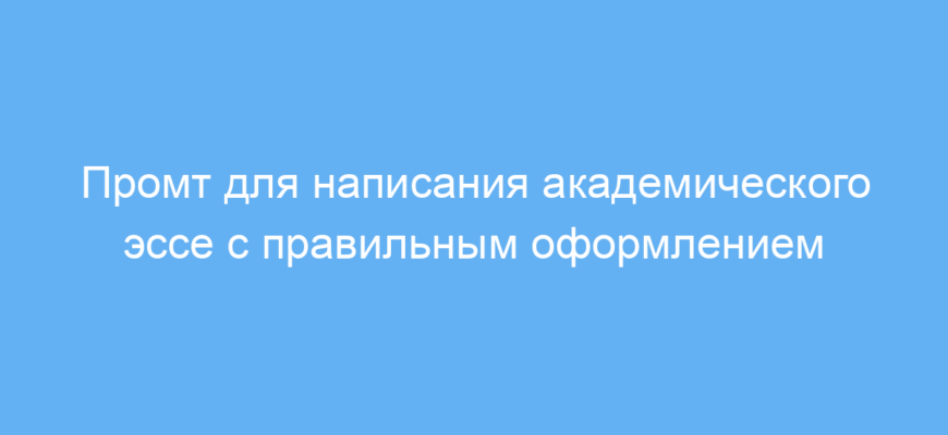 Этот промт создан для студентов, преподавателей и всех, кто пишет академические эссе. Он помогает правильно структурировать работу, улучшить язык в соответствии с академическими стандартами, а также оформить цитаты по стилям MLA, APA или Chicago. Промт решает такие задачи, как формулирование чётких тезисов и аргументов, подбор более сложной лексики, а также корректное оформление ссылок и цитат.